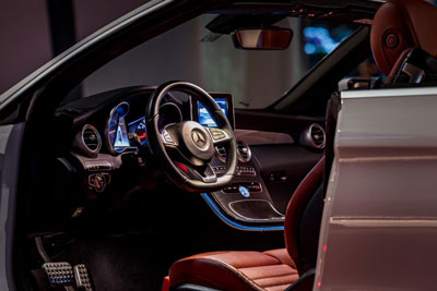 Mercedes Benz C200, the cleanest and most fuel-efficient model available in convertible category. C200, power can go up from 201bhp to 208bhp. Soft touch door trims, a smooth, black, leather-topped dash and aluminum highlights on the door handles, air vents and instrument surrounds all look sharp.
