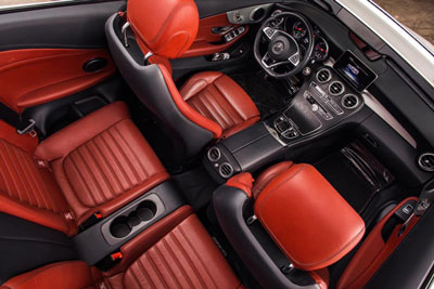 Mercedes Benz C200, the cleanest and most fuel-efficient model available in convertible category. C200, power can go up from 201bhp to 208bhp. Soft touch door trims, a smooth, black, leather-topped dash and aluminum highlights on the door handles, air vents and instrument surrounds all look sharp.